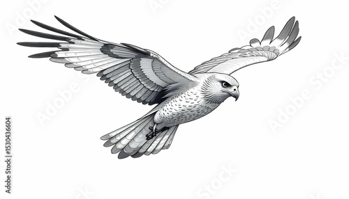 © MHK01, Obraz premium drawing flying eagle in pencil sketch style on white background