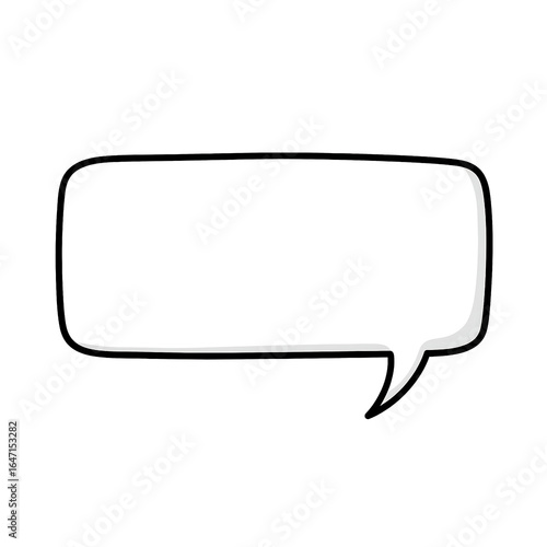 Fototapeta premium Drawing illustration of a white rectangular bubble speech with black outline isolated on white background