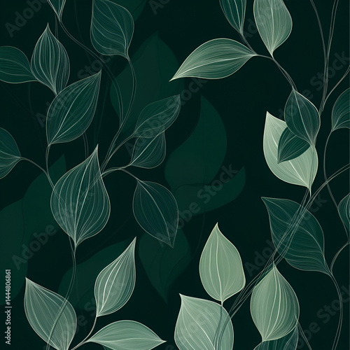 Obraz premium Drawing leaves nature illustration dark green background artistic viewpoint subtle and refined concept