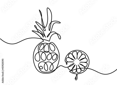 © suns07butterfly, Obraz premium Drawing line pineapple on the white background. Vector