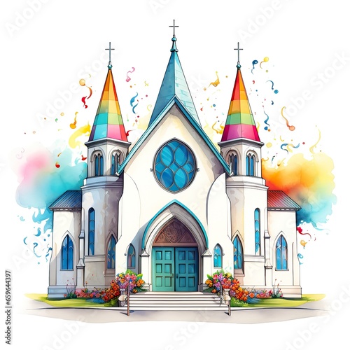 © Wander, Fototapeta premium Drawing of a church on a white background.