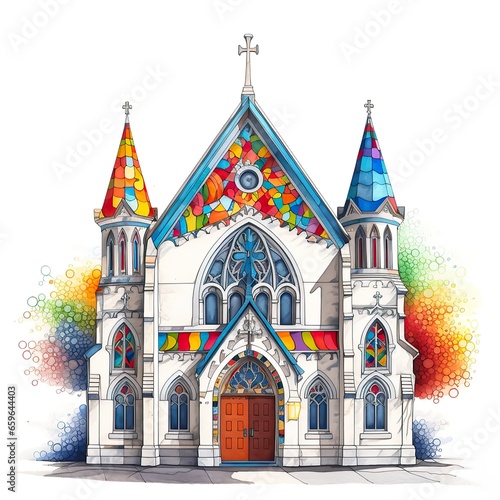 © Wander, Fototapeta premium Drawing of a church on a white background.