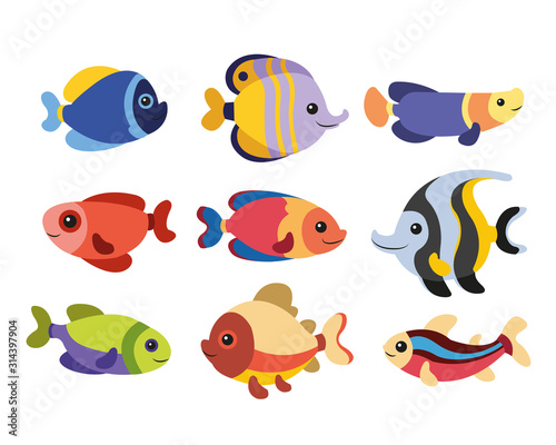 Naklejka premium drawing of tropical sea fishes