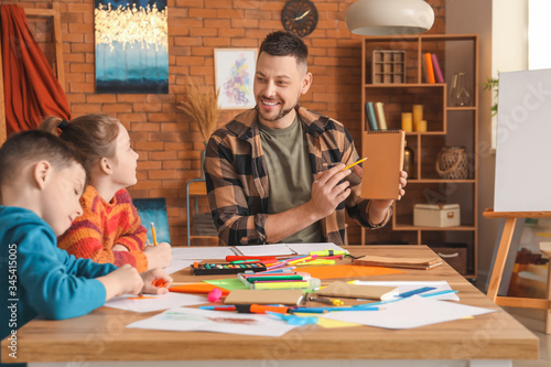 © Pixel-Shot, Fototapeta premium Drawing teacher giving optional classes at school