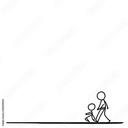 Obraz premium drawing with a black line on a white background, minimalism style, a man with a child, fantasy, generated in AI