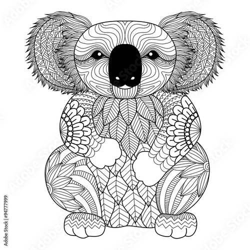 Fototapeta premium Drawing zentangle Koala for coloring page, shirt design effect, logo, tattoo and decoration.