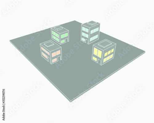 Obraz premium Drawings of houses on a color plane