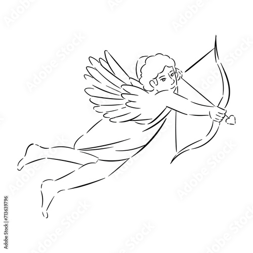 Fototapeta premium Drawn Cupid with bow and arrow on white background