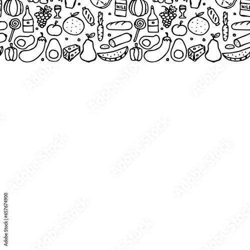 © eliyashevskiy, Obraz premium Drawn food background. Doodle food illustration with place for text