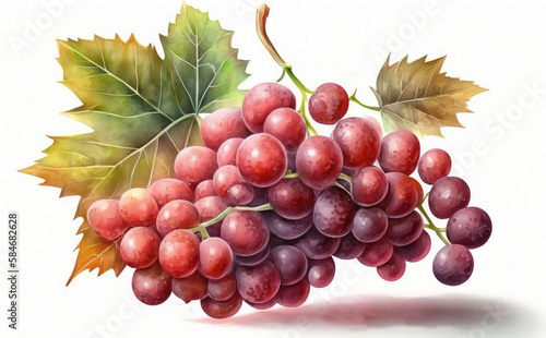 Obraz premium drawn red grape on white background watercolor fruit organic food...