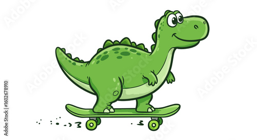 Naklejka premium Drawn with thick crayons, Playful Dinosaur on Skateboard A Fun Illustration for Kids