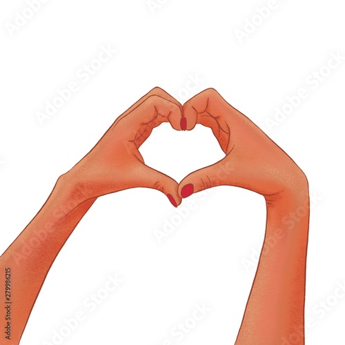 Obraz premium Drawn woman's dark-skinned hands making a heart shape