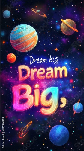 Naklejka premium Dream big A cosmic scene with planets and stars forming an inspiring...