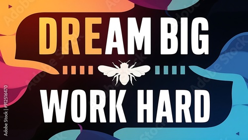 © Kartik, Naklejka premium Dream big, work hard colorful background and text (T-shirt Design Motivational Quote, Illustration ,Typography)