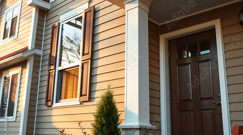 Fototapeta premium Dream House Exterior: Stunning Architecture and Design. High-quality image of a beautiful house exterior, showcasing its design, architecture, and landscaping.