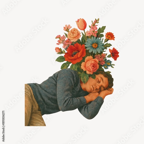 © Rawpixel.com, Fototapeta premium Dreaming man with blooming flowers