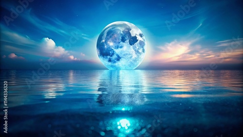 © prapatsorn, Fototapeta premium Dreamlike Blue Moon Sea Reflection - Tilt-Shift Fantasy Photography
