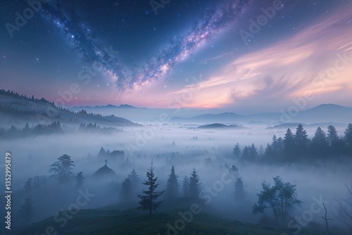© Michael, Fototapeta premium Dreamlike Celestial Landscape with Ethereal Mist and Beautiful Haze