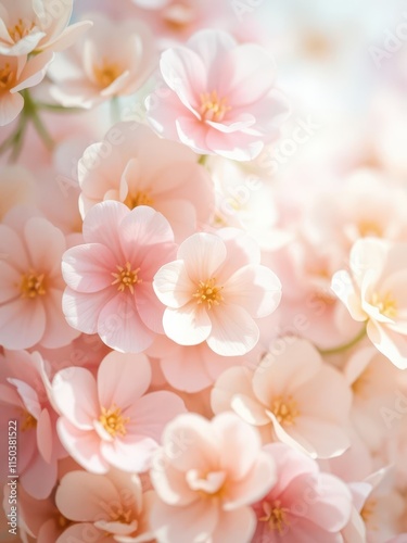 © dadtophoto, Fototapeta premium Dreamlike pastel floral swirls, soft focus, blurred petals, gouache, summer