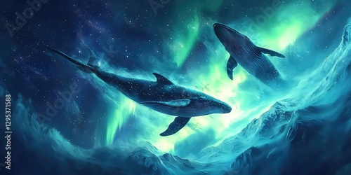 Obraz premium Dreamlike scene where the aurora takes the shape of cosmic whales swimming.