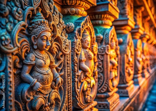 © Arnada, Fototapeta premium Dreamlike Stone Carving Texture: Repeating Pattern Background