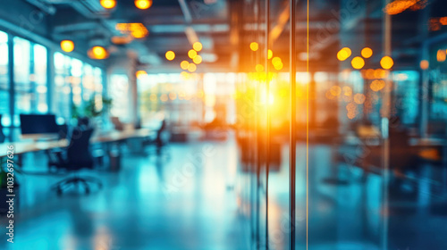 Obraz premium Dreamlike vision of a modern tech office with soft focus and ethereal...