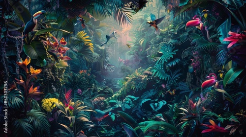 Obraz premium Dreamscape inspired by Latin American beauty with lush scenery and wildlife...