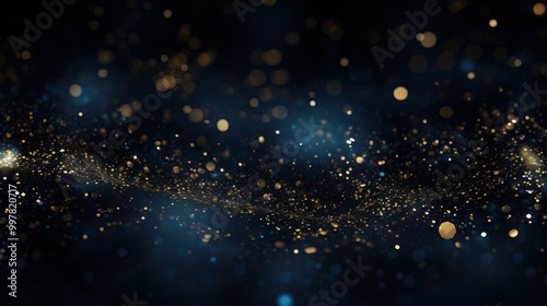 © Prapan, Fototapeta premium dreamy background filled with shimmering blue and gold glitter lights, softly blending into a velvety black backdrop