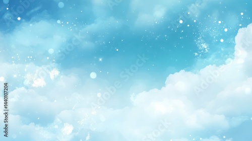 Fototapeta premium Dreamy blue sky with fluffy white clouds and a soft, ethereal atmosphere.