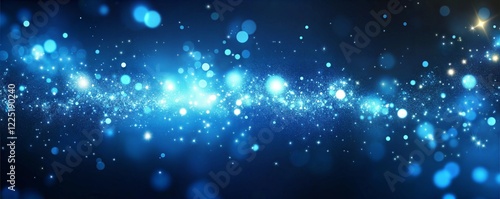 © Fahima, Obraz premium Dreamy Blue Sparkling Light Background – Abstract Bokeh Glow Effect