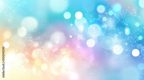 © Ольга Филиппова, Obraz premium Dreamy, blurred background of vibrant blues, pinks, and yellows. Sparkling white stars create a soft, ethereal glow