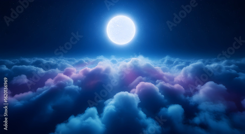 © NYxStudio, Fototapeta premium Dreamy Celestial Sphere Illuminating a Vibrant Sea of Ethereal Clouds at Night, Creating a Mystical and Cosmic Landscape