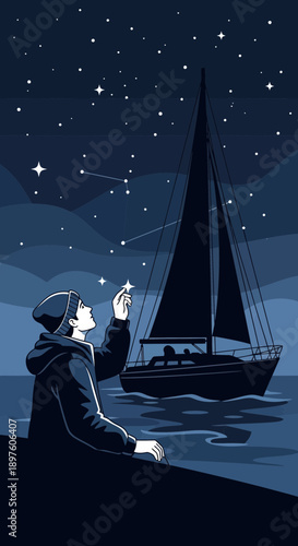 Obraz premium Dreamy Celestial Voyage Under Starry Skies Awaiting Discovery