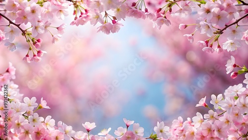 Fototapeta premium Dreamy cherry blossoms forming a natural border, cherry blossoms, flowers,...