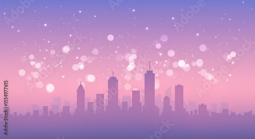 © Safaruly, Fototapeta premium Dreamy Cityscape at Twilight: A Serene Pink and Purple Skyline