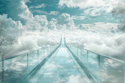 Obraz premium Dreamy Cloud Bridge in Ethereal Sky with Soft Blue Hues