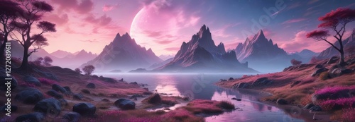Obraz premium Dreamy, ethereal landscape with swirling blue and pink hues blending together...