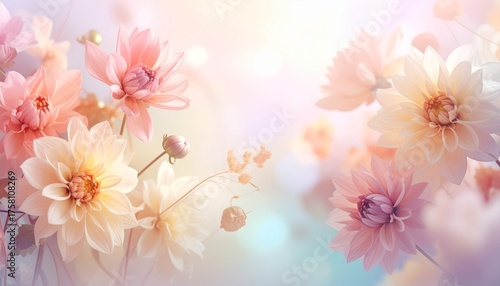 Naklejka premium Dreamy Floral Scene with Pastel Background and Light Effects