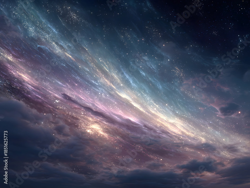 Obraz premium Dreamy Galaxy Night Sky with Swirling Star Trails, Deep Space Background for Tech or Mystical Wallpaper