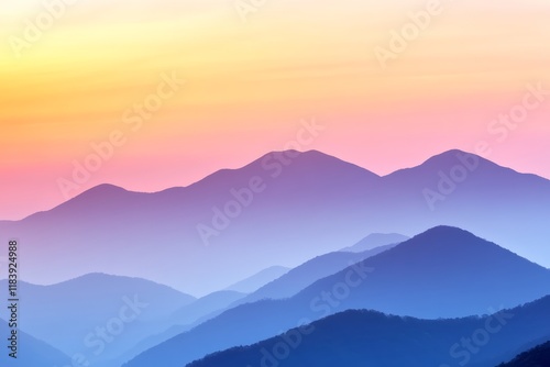 Fototapeta premium Dreamy Gradient of Misty Mountains at Sunrise in Pastel Colors