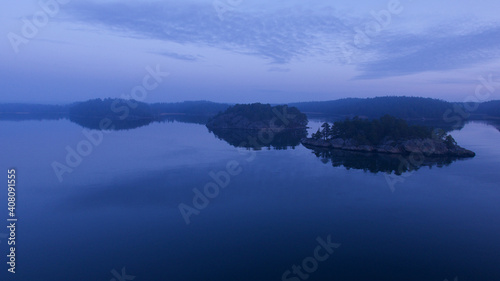 Fototapeta premium Dreamy morning, Small islands in Archipelago of Stockholm.