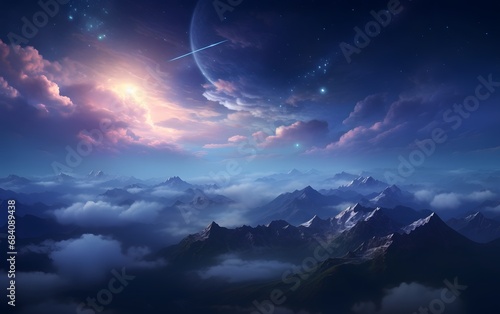 Naklejka premium Dreamy Night Sky Over the Majestic Mountains