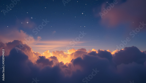 Fototapeta premium Dreamy night sky with glowing stars peeking through layers of soft,...