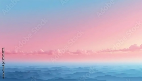 © zainal, Obraz premium Dreamy pastel landscape with soft rolling hills and a cotton candy sky evoking tranquility.