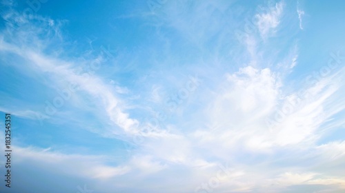 Fototapeta premium Dreamy pastel sky with soft wispy clouds — serene blue and white cloudscape,...