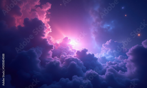 © Narong, Obraz premium Dreamy Purple Cloudscape, Night Sky - Surreal/Fantasy Art