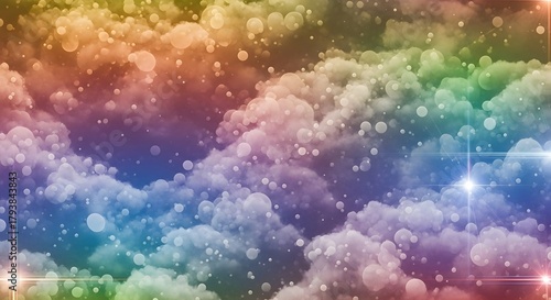 © Alderman, Fototapeta premium Dreamy Rainbow Clouds with Bokeh and Lens Flares - Abstract Background