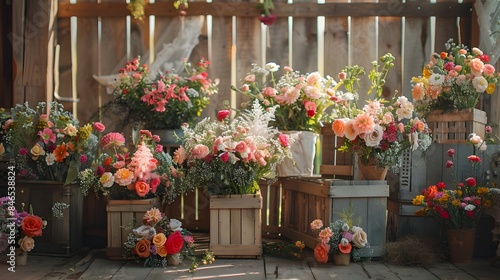 Naklejka premium Dreamy Rustic Countryside Ambiance for Enchanting Woodland Wedding Decor