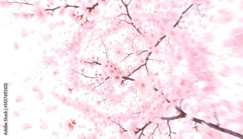 © pray_darling, Fototapeta premium Dreamy Spring: Blurred Pink Cherry Blossoms Bursting into a White Canvas Creating an Ethereal Ambience
