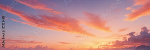 © Nutwarun, Obraz premium Dreamy sunset sky, abstract watercolor texture, sky, art